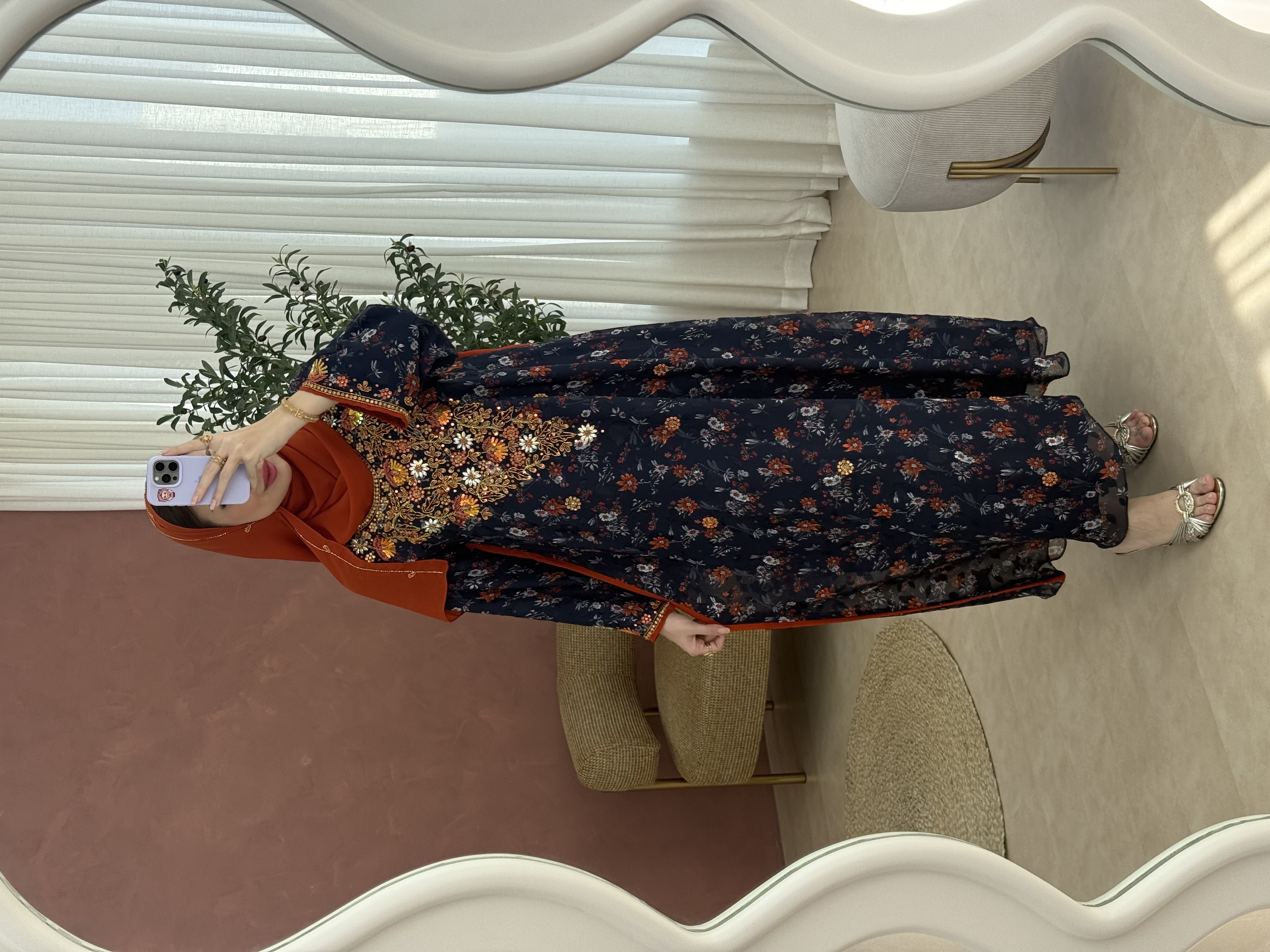 مخور شيفون مخروز مبطن بكريب ناعم مع شيله دجى الليل