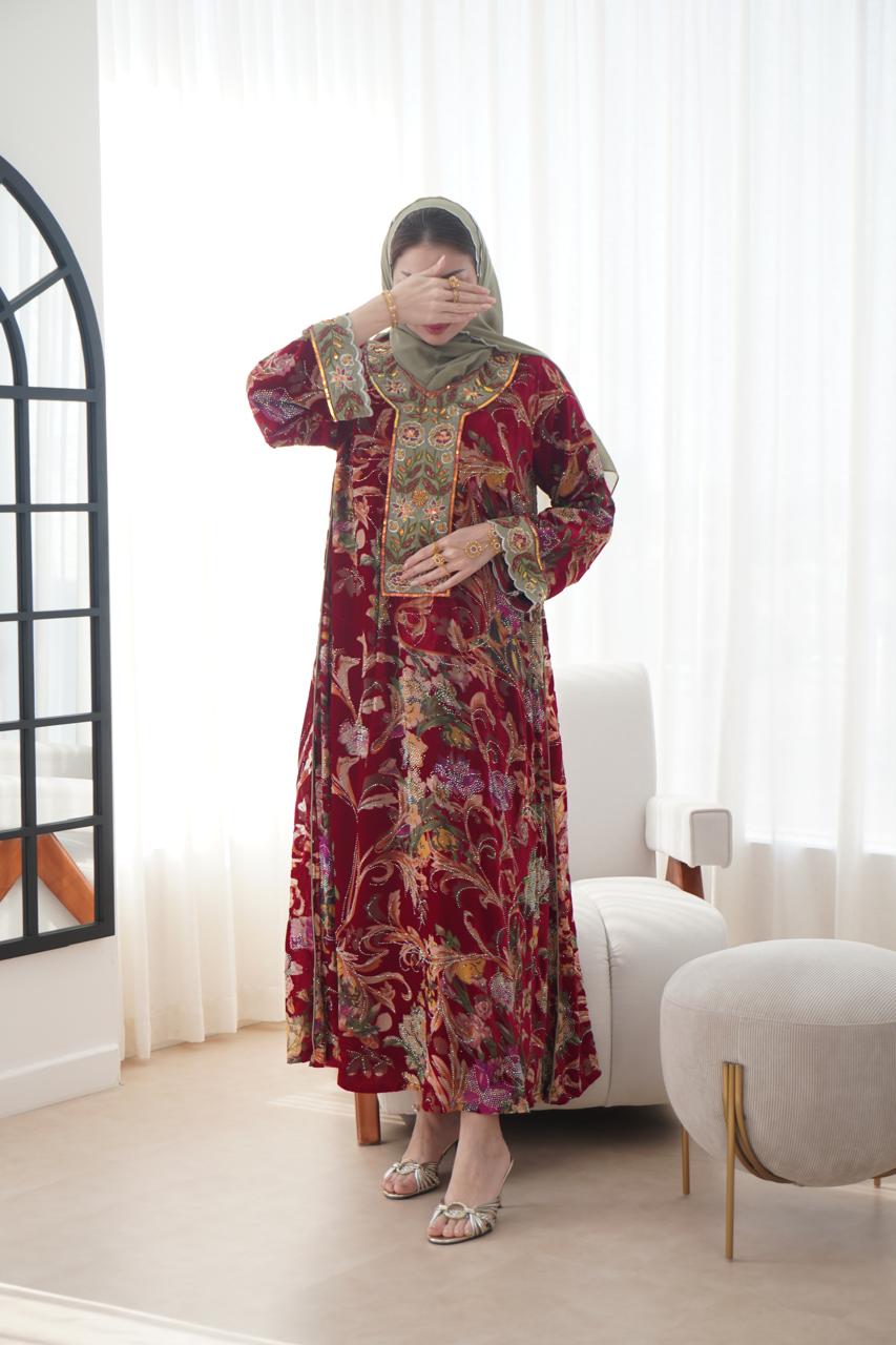 مخور مخمل شيفون مبطن بقماش الماس مع شيله دجى الليل شغل تطريز مع خرز