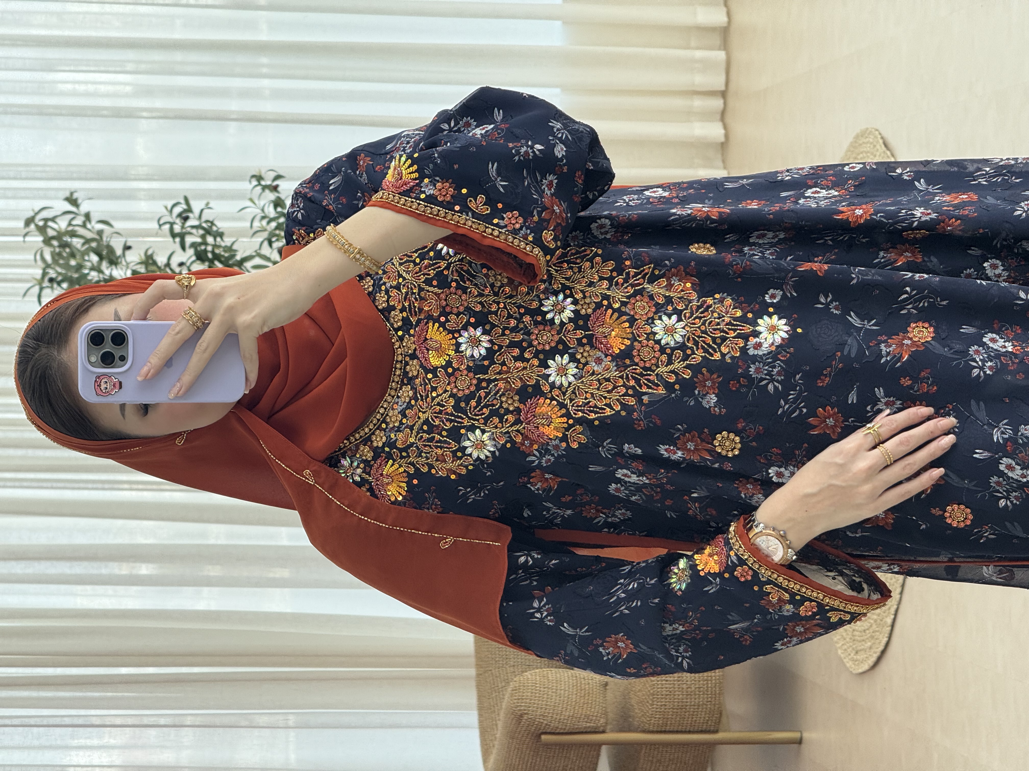 مخور شيفون مخروز مبطن بكريب ناعم مع شيله دجى الليل