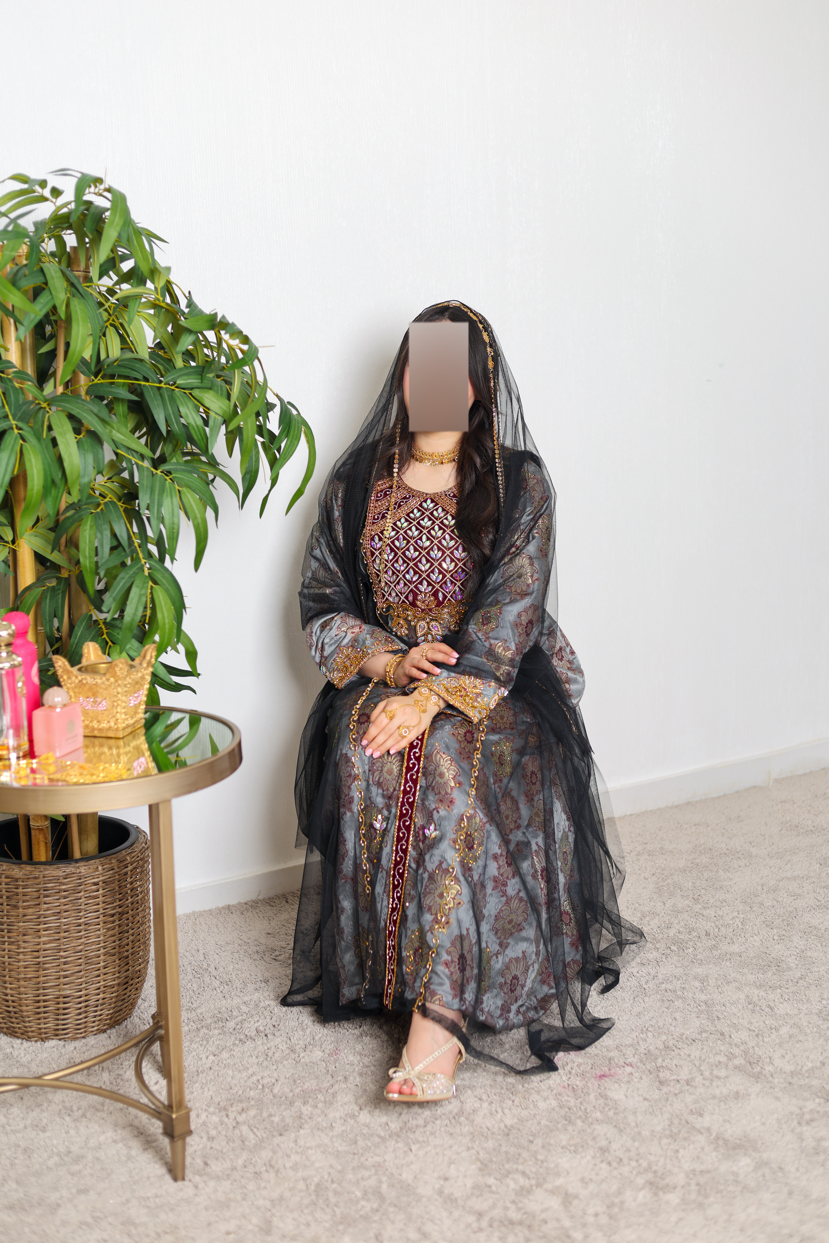 اطلاله جميله للعيد والمناسبات القماش بريسم بالكرستال بشغل خرز مع تطريز